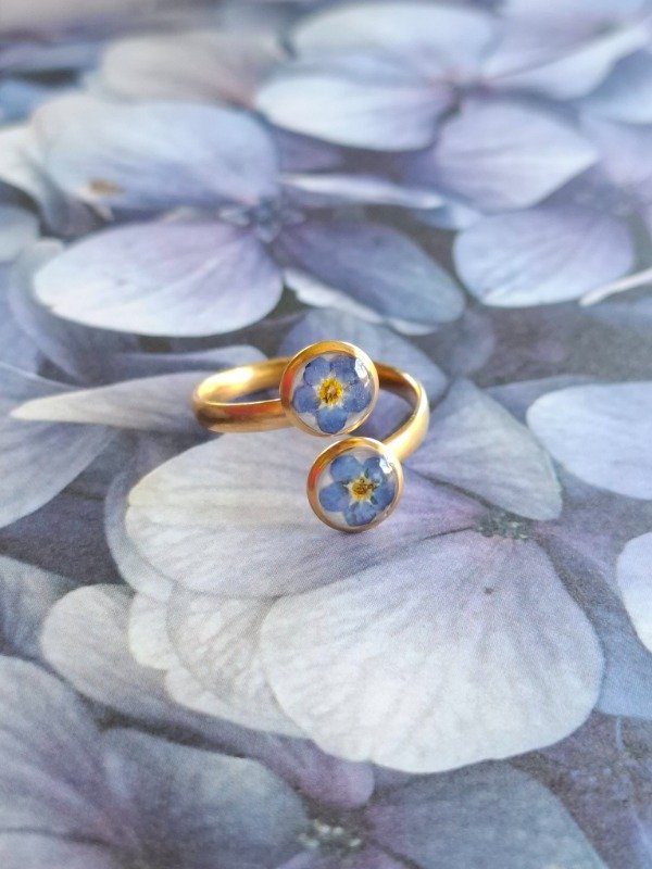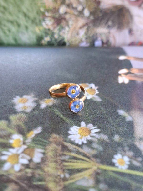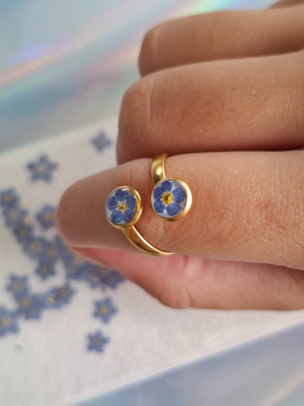 Este anillo doble está elaborado con dos No me Olvides