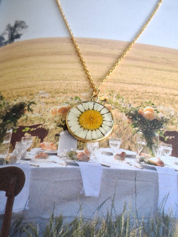 Este dije con una Margarita blanca es una auténtica joya realizada en latón, e incluye su cadena de acero quirúrgico dorado y una bolsita para que te acompañe a donde vayas, aunque no lo lleves puesto :)