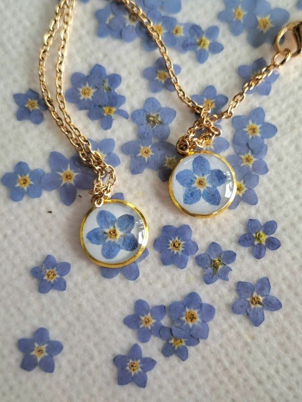 Este dije con una No me Olvides es una auténtica joya realizada en acero quirúrgico dorado y una bolsita para que te acompañe a donde vayas, aunque no lo lleves puesto :)
