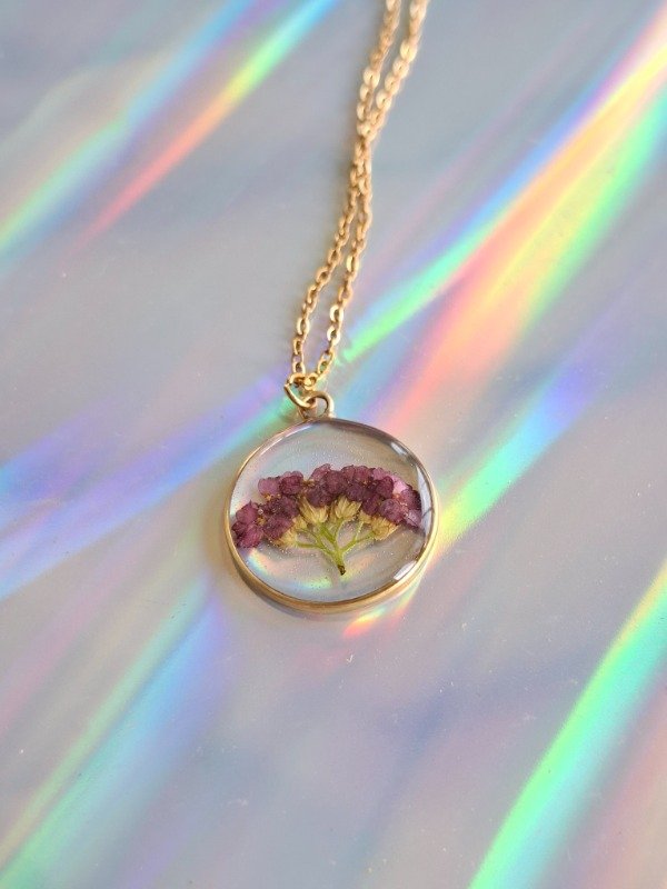 Este dije con un ramo de Alisos violetas es una auténtica joya realizada en latón, e incluye su cadena de acero quirúrgico dorado y una bolsita para que te acompañe a donde vayas, aunque no lo lleves puesto :)