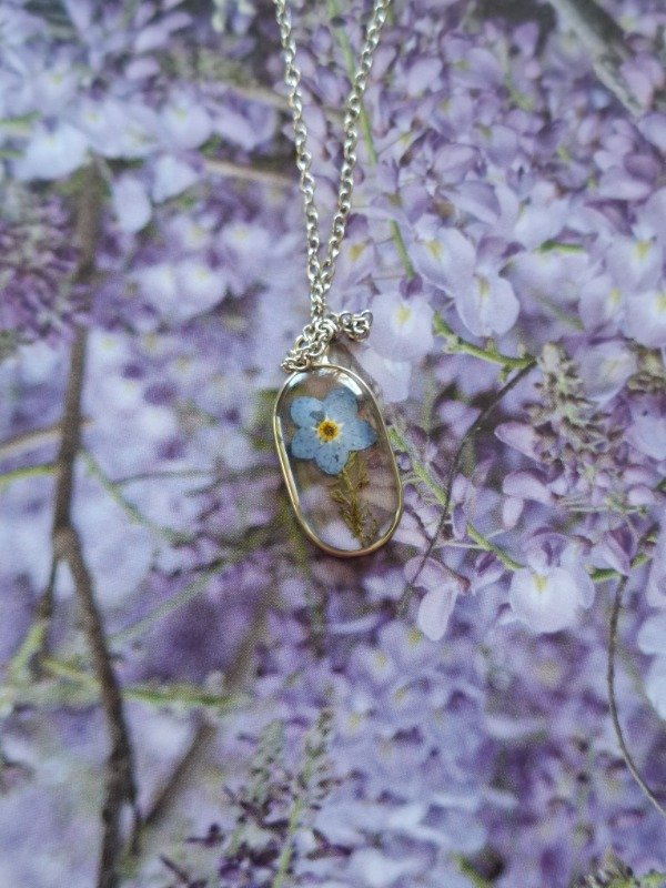 Este dije con un ramo de No me Olvides es una auténtica joya realizada en alpaca, e incluye su cadena de acero quirúrgico y una bolsita para que te acompañe a donde vayas, aunque no lo lleves puesto :)