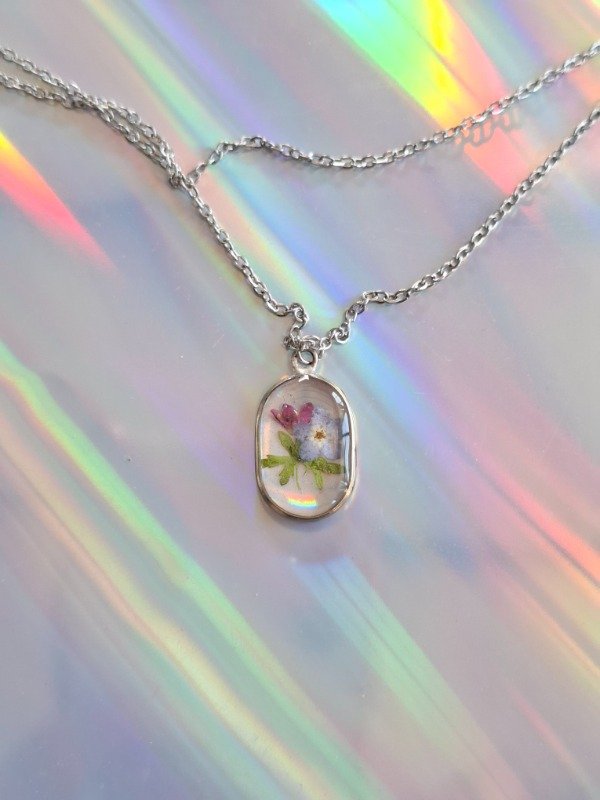 Este dije con un ramito de No me Olvides y Centaureas es una auténtica joya realizada en alpaca, e incluye su cadena de acero quirúrgico y una bolsita para que te acompañe a donde vayas, aunque no lo lleves puesto :)